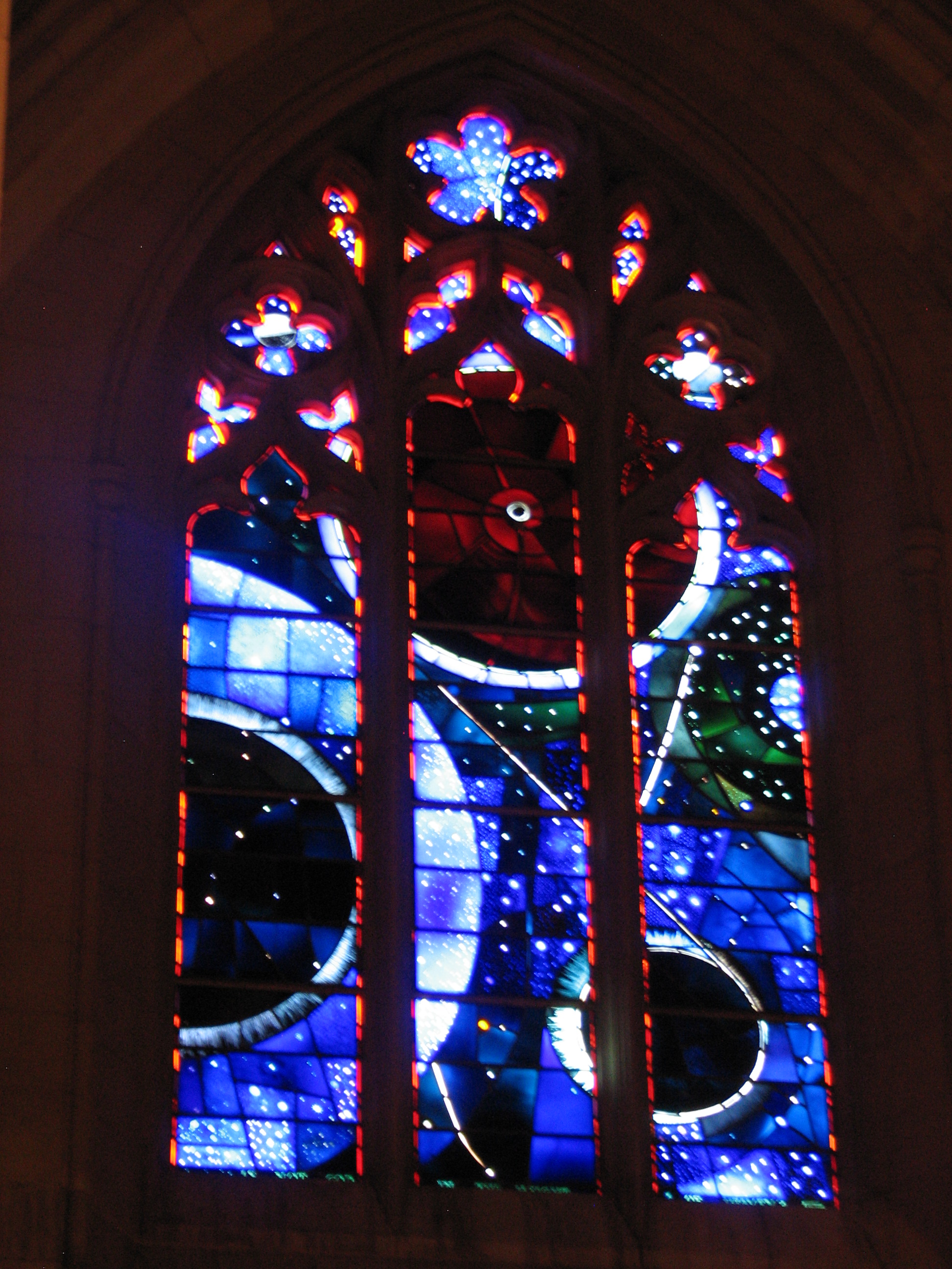Stained glass windows have historically been used to educate and inspire. In medieval times, they were used to illustrate biblical stories to a vastly illiterate population, as well as serving as status symbols for the church’s power and influence. The churches that I attended as a child and an adult each had different versions of stained glass. Some were pictorial depictions of Biblical stories, others were merely lovely colors in interesting shapes. Nothing as magnificent as the gothic European cathedrals, but still pretty and both soothing and inspiring to look at. From within the building, stained glass is just that; soothing, inspiring, and impressive because that’s what it’s meant to be. The light from outside shines through all the colors and enlightens the room, and the people inside. But to the outside world, stained glass is dark, colorless and foreboding when the light is also from without. Too often, we’re content to take in the outer light, enjoy it for ourselves and keep it there instead of turning it outward. Stained glass shines brightest to the world when it’s dark, but only if there’s an inner light.